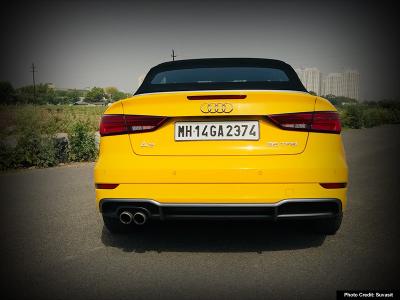 कार की रियर प्रोफाइल पर नज़र डालें तो यहां भी आपको स्पोर्टी एलिमेंट्स नज़र आएंगे। यहां डायनेमिक टर्न इंडिकेटर्स लगाए गए हैं। साथ ही यहां ट्विन एग्जहॉस्ट और बंपर के पास एक ग्रे लाइन दी गई है जो इसकी खूबसूरती और बढ़ा देते हैं। कार में लगे एलॉय व्हील को देखकर थोड़ी निराशा होती है। यहां एलॉय के डिजाइन को और बेहतर किए जाने की उम्मीद बाकी है। कुल मिलाकर कहें तो ये कार A3 सेडान की तरह ही है। कार में लगे ट्विन डोर और सॉफ्ट टॉप इसे सेडान वर्जन से अलग लुक देते हैं।