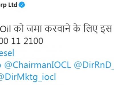 इंडियन ऑयल कर्पोरेशन लिमिटेड ने ट्वीट के जरिये एक नंबर जारी किया है जिस पर फोन कर इस्तेमाल किये जा चुके कुकिंग ऑयल को जमा कराया जा सकता है। ये नंबर 1800112100 है।