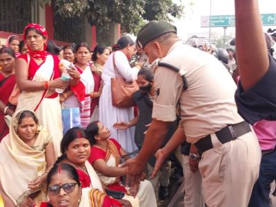 पटनाः बिहार विधानसभा के शीतकालीन सत्र के आज दूसरे दिन अचानक हजारों की संख्या में आंगनबाड़ी सेविका और सहायिका अपनी पांच सूत्री मांगों को लेकर विधानसभा के सामने हंगामा किया। महिलाएं विधानसभा का घेराव करने जा रही थीं। उनका हुजूम विधानसभा के करीब पहुंच चुका था। लेकिन पुलिस ने रोक दिया।