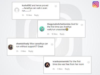 राध्या का मां ऐश्वर्या का हाथ छुड़ाकर भागना ही फैंस की नजरों में चढ़ गया है। इसके बाद यूजर्स ने ऐश्वर्या और आराध्या को जमकर ट्रोल किया है। लोगों ने इस वीडियो पर कमेंट करते हुए लिखा कि आराध्या भाग और चल सकती हैं। वहीं एक अन्य शख्स ने कमेंट करते हुए लिखा, 'वाह, आराध्या बिना सपोर्ट के भाग सकती हैं? ग्रेट'