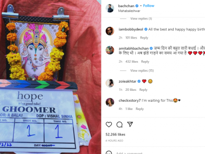 वैसे इस पोस्ट पर एक्टर के पिता और दिग्गज अभिनेता अमिताभ बच्चन का कमेंट भी आया है। उन्होंने अभिषेक के पोस्ट पर कमेंट करते हुए लिखा, "जन्मदिन की बहुत सारी बधाई और घूमर के लिए भी। अब झंडे गाड़ने का समय आ गया है।" बिग बी के अलावा अभिषेक बच्चन के पोस्ट पर उनकी बहन श्वेता नंदा और भतीजी नव्या नवेली नंदा ने भी कमेंट कर बधाई दी है। यही नहीं, एक्टर के पोस्ट पर बिपाशा बासु और बॉबी देओल ने भी कमेंट किया है।
