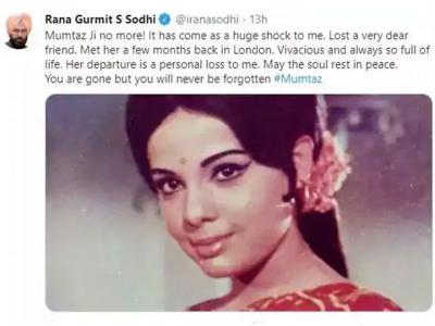 यह गलतफहमी पंजाब के खेल मंत्री राणा गुरमीत एस सोढ़ी के ट्वीट के बाद फैली, सोढ़ी ने ट्वीट किया, ''मुमताजजी नहीं रहीं! यह मेरे लिए बड़ा झटका है। मैंने बहुत करीबी दोस्त को खो दिया। कुछ महीने पहले उनसे लंदन में मुलाकात हुई थी, हमेशा जीवन से भरीं, उनका जाना मेरे लिए व्यक्तिगत क्षति है, ईश्वर उनकी आत्मा को शांति दें, आप चलीं गईं लेकिन आपको कभी भुलाया नहीं जा सकेगा।