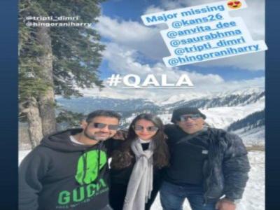 अनुष्का ने इंस्टाग्राम पर अपने भाई कर्णेश और तृप्ति डिमरी की एक खूबसूरत फोटो शेयर की है, जिसमें दोनों किसी बर्फीले जगह पर खड़े हैं और तृप्ति काले ड्रेस और क्रीम रंग की शॉल में बेहद प्यारी लग रही हैं । तृप्ति ने अनुष्का के प्रोडक्शन हाउस की फिल्म बुलबुल में मुख्य भूमिका निभाई थी । ये थ्रो बैक फोटो पोस्ट कर अनुष्का ने कैप्शन में लिखा- मेजर मिसिंग और आंखों में दिल वाली इमोजी भी शेयर की । हालांकि ये फोटो पहले कर्णेश ने अपनी स्टोरी में शेयर की थी और फिर अनुष्का ने ।