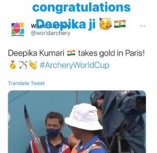 गौरतलब है कि दुनिया की तीसरे नंबर की तीरंदाज दीपिका कुमारी ने रूस की एलीना ओसिपोवा को सीधे सेटों में हराकर महिला और मिश्रित टीम खिताब के साथ तीसरा खिताब अपने नाम कर लिया है। दीपिका की इस उपलब्धि पर कंगना के अलावा एक्टर अनुपम खेर, अहाना कुमरा सहित कई अन्य हस्तियों ने भी उन्हें बधाई दी है।
