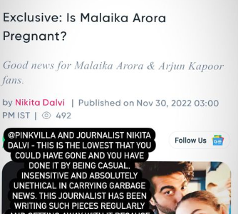अभिनेता अर्जुन कपूर एक मीडिया हाउस पर तब भड़क गए जब रिपोर्ट में दावा किया गया कि मलाइका अरोड़ा अभिनेता के साथ अपने पहले बच्चे की उम्मीद कर रही हैं।