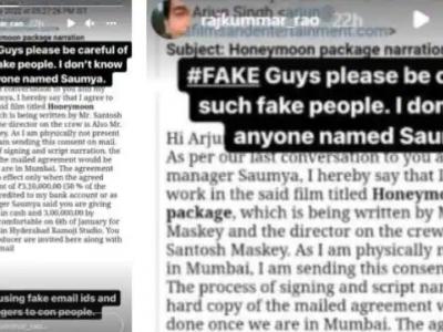 राजकुमार राव ने फर्जी इमेल की स्क्रीनशॉट साझा करते हुए लोगों से सावधान रहने की अपील की है।