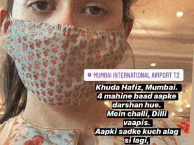 संजना ने अपनी इंस्टा स्टोरी पर एक तस्वीर पोस्ट करते हुए लिखा, 'खुदा हाफिज मुंबई। चार महीने बाद आपके दर्शन हुए। मैं चली दिल्ली वापस। आपकी सड़कें कुछ अलग सी लगीं, सुनसान थीं। शायद मेरे दिल में जो दुख है, मेरे नज़रिए को बदल रहे हैं या शहय्द फिलहाल आप में भी थोड़े दुख हैं। मिलते हैं? जल्दी। या शायद नहीं।'