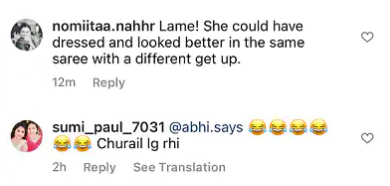 बता दें कि दीपिका पादुकोण ने रेड कारपेट के लिए मशहूर फैशन डिजाइनर सब्यसाची मुखर्जी की ब्लैक एंड गोल्ड सीक्वेंस साड़ी कैरी की थी। साड़ी के साथ एक्ट्रेस ने ड्रामेटिक आईलाइनर, न्यूड लिप्स और chandelier इयरिंग्स के साथ अपना लुक पूरा किया था। कुल मिलाकर एक्ट्रेस रेड कारपेट के लिए सब्यसाची ऑउटफिट और एक्सेसरीज में नजर आईं। हालांकि, सोशल मीडिया पर यूजर्स के नीच एक्ट्रेस का रेट्रो स्टाइल कुछ जचा नहीं। ऐसे में यूजर्स ने उनके लुक को लेकर अपनी प्रतिक्रिया दी।