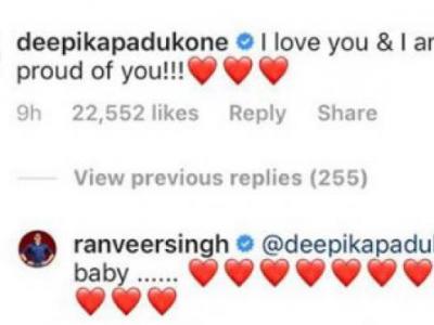 फिर दीपिका ने लिखा, 'आई लव यू और मैं तुम पर बहुत गर्व करती हूं'। जिस पर रणवीर ने दिल के इमोजी के साथ लिखा 'बेबी'।