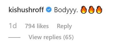 दिशा पटानी की इस फोटो पर अब टाइगर श्रॉफ की बहन कृष्णा श्रॉफ का रिएक्शन आया है। उन्होंने दिशा के फोटो पर लिखा है... Bodyyy. साथ ही आग वाला इमोजी भी बनाया है। यानी कृष्णा यह कहना चाह रही हैं कि दिशा तुम्हारी बॉडी ने तो आग लगा दी।
