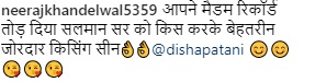 दूसरे यूज़र ने लिखा, "यह इकलौती ऐसी साड़ी है जिसमें पल्लू की जगह नाड़ा है, सिर्फ इतना ही नही दिशा की साड़ी पर कुछ मीम्स भी बन रहे हैं। एक यूज़र ने लिखा, "अगर आप खुद को कभी बेकार महसूस कर रहे हैं तो इस गाने में दिशा के पल्लू के बारे में सोचें। एक तस्वीर में दिशा की साड़ी के पल्लू पर इशारा करते हुए लिखा गया, "क्या मैं तुम्हारे लिए एक मजाक हूं?"