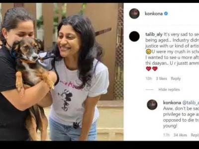 कोंकणा सेन की पालतू संग तस्वीर पर एक यूजर ने उनके बूढ़े होने की बात कह अफसोस जाहिर की तो अभिनेत्री ने उसे मजेदार जवाब दे चुप करा दिया। दरअसल एक यूजर ने कमेंट किया, "आपको बूढ़ा होते देखकर बहुत दुख होता है...इंडस्ट्री ने आपके जैसी कलाकार से न्याय नहीं किया...आप...मेरी क्रश थीं।" इस पर प्रतिक्रिया देते हुए कोंकणा ने कहा, "दुखी मत होइए...युवावस्था में बुरी तरह मरने से बूढ़ा होना अच्छा है।"