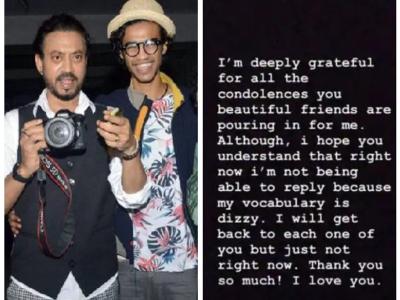 बाबिल ने लिखा, 'मैं उन सभी संवेदनाओं के लिए तहेदिल से आभारी हूं जो आप प्यारे लोग मुझे भेज रहे हैं। हालांकि, मुझे उम्मीद है कि आप समझ रहे होंगे कि अभी मैं जवाब देने में सक्षम नहीं हूं क्योंकि मैं शब्दों में बयां नहीं कर सकता।' उन्होंने कहा, 'मैं आपके पास आऊंगा लेकिन फिलहाल नहीं। बहुत बहुत धन्यवाद। आपको प्यार।'