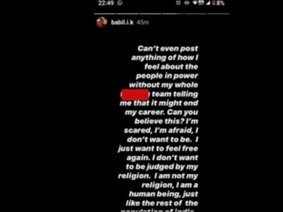 बाबिल ने इंस्टाग्राम पोस्ट में कई सवाल खड़े किए हैं। इरफान के बेटे बाबिल ने लिखा कि मैं सत्ताधारियों के बारे में अपने मन की बात नहीं लिख सकते हैं क्योंकि हमेशा मेरी टीम कहती है कि इससे मेरा करियर खत्म हो जायेगा। क्या आप इस विश्वास कर सकते हैं? मैं डरा हुआ हूं, मैं भयभीत हूं, मैं डरना नहीं चाहता। मैं बस दोबारा आजाद महसूस करना चाहता हूं। मैं ये नहीं चाहता के मेरे धर्म के आधार पर लोग मेरे बारे में धारणा बनाएं। देश की बाकी जनता की तरह ही मैं अपना धर्म नहीं हूं, मैं एक इंसान हूं।’