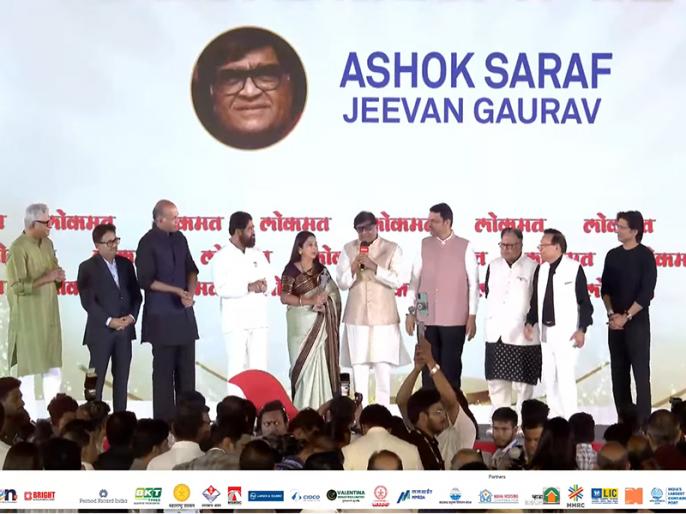 मुंबईः मराठी सिनेमा के बादशाह और दर्शकों के चहेते अशोक सराफ, जिन्हें 'अशोक मामा' के नाम से भी जाना जाता है, को एक और सम्मान से नवाजा गया है। महाराष्ट्र भूषण और पद्म श्री पुरस्कारों के बाद, अशोक सराफ को इस वर्ष के 'लोकमत महाराष्ट्रीयन ऑफ द ईयर जीवन गौरव' पुरस्कार से सम्मानित किया गया है। इस विशेष अवसर पर अशोक सराफ के साथ उनकी पत्नी और अभिनेत्री निवेदिता सराफ भी मौजूद थीं। महाराष्ट्र के मुख्यमंत्री देवेंद्र फडणवीस और उपमुख्यमंत्री एकनाथ शिंदे ने अशोक सराफ को 'लोकमत महाराष्ट्रीयन ऑफ द ईयर लाइफटाइम अचीवमेंट अवार्ड' से सम्मानित किया।