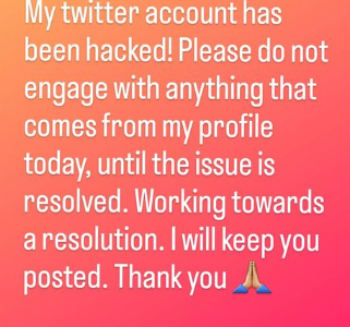 मनोज ने शुक्रवार सुबह इंस्टाग्राम स्टोरी पर लिखा, "मेरा ट्विटर अकाउंट हैक हो गया है। कृपया आज मेरी प्रोफाइल से आने वाली किसी भी चीज से तब तक न जुड़ें जब तक कि समस्या का समाधान नहीं हो जाता। संकल्प की दिशा में काम कर रहा है। आपको सूचित किया जाता रहेगा।"