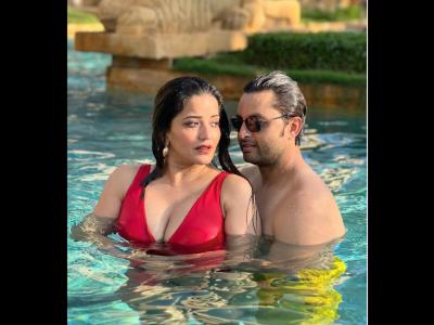 हाल ही में शेयर की गई तस्वीरों में मोनालिसा पूल में पति के साथ मस्ती करती हुई दिख रही हैं। उन्होंने बहुत सारी हॉट फोटोज और एक वीडियो शेयर किया है। इस दौरान मोनालिसा ने रेड कलर की मोनोकिनी पहनी हुई है जिसमें उनका कर्वी फिगर फ्लॉन्ट हो रहा है।