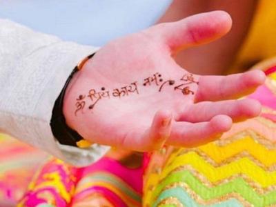फोटो से साफ नजर आ रहा है कि किस तरह से निक देसी दर्ल के प्यार में रंगे हुए थे। प्रियंका के हाथों में लगी खूबसूरत मेहंदी जहां खिल कर नजर आ रही थी वहीं उनके पति निक ने भी अपने हाथों में मेहंदी लगवा रखी थी। हाल ही में प्रियंका चोपड़ा ने अपने इंस्टाग्राम अकाउंट पर निक की एक तस्वीर शेयर की है जिसमें निक के हाथ में प्रियंका चोपड़ा के नाम की मेहंदी लगी दिख रही है। अब तस्वीर देख कर ये साफ दिख रहा है कि उन्होंने हाथ में ओम प्रियंकाय नम: लिखा हुआ है।