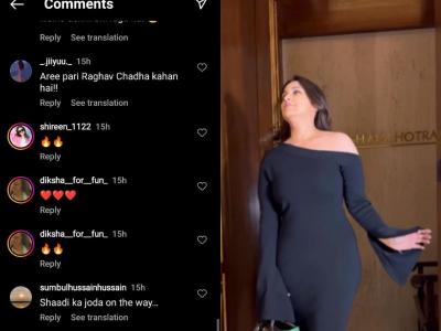 परिणीति चोपड़ा का नया वीडियो सामने आने के बाद से फैन्स ढेरों कमेंट्स कर रहे हैं। एक फैन ने कमेंट करते हुए पूछा राघव कहां है परिणीति? एक अन्य ने कमेंट करते हुए आशंका जताई कि कहीं आपका शादी का लहंगा भी तो पिंक कलर का नहीं होगा। इसके अलावा कई फैन्स ने तरह-तरह के कमेंट्स किए हैं।