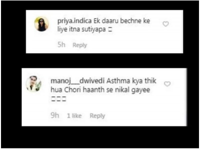 दूसरे यूजर ने लिखा- 'अस्थमा क्या ठीक हुआ छोरी हाथ से निकल गई।' तीसरे ने लिखा- 'दारू बेचने के लिए इतना सूतियापा।
