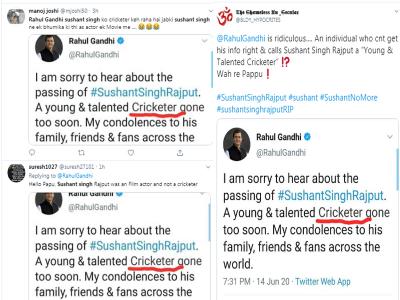 ऐसे सुशांत के निधन पर सोशल मीडिया सेलेब्स फैंस से लेकर राजनेताओं मे भी दुख जताया था। पीएम नरेंद्र मोदी और राहुल गांधी ने भी इस पर दुख जताया था। ऐसे में राहुल गांधी ने एक्टर सुशांत सिंह को श्रद्धांजली देने के लिए ट्वीट किया है। वायरल किए जा रहे इस स्क्रीनशॉट में दिख रहा है कि राहुल ने एक्टर सुशांत सिंह राजपूत को क्रिकेटर कहा है।