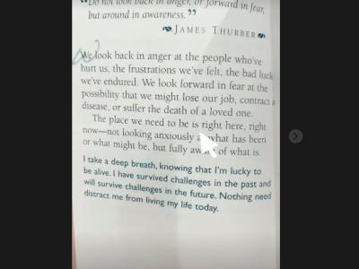 बॉलीवुड एक्ट्रेस शिल्पा शेट्टी ने जेम्स थर्बर के कोट को पोस्ट किया है जिसमें लिखा है- 'गुस्से में पीछे मुड़कर ना देखें या डर में आगे ना देखें, बल्कि जागरूकता में चारों और देखें। शिल्पा शेट्टी की पोस्ट में आगे लिखा है, 'हम उन लोगों पर गुस्सा होते हैं जिन्होंने हमें चोट पहुंचाई है। जो निराशाएं हमने महसूस की हैं, जो दुर्भाग्य हमने सहा है। हमेशा इस डर में रहते हैं कि हम अपनी जॉब खो सकते हैं, किसी बीमारी की चपेट में आ सकते हैं या किसी अपने की मौत से दुखी हो सकते हैं। हमें जिस स्थान पर रहने की आवश्यकता है, वह यहीं है।'