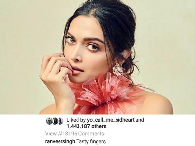 रणवीर सिंह सिर्फ यहीं ही नहीं रुके इसके बाद भी दीपिका की फोटो पर उन्होंने कंमेंट किया। दीपिका की एक तस्वीर जिसमें वो अपने होठों पर ऊंगलियां रखें दिख रही हैं। रणवीर ने इस फोटो पर कंमेंट किया है लिखा है..टेस्टी फिंगर। दीपिका और रणवीर का ये कंमेट वाला रिश्ता भी अनोखा है। दोनों ही एक-दूसरे की फोटोज पर कभी फनी, कभी एनॉइंग तो कभी रोमांटिक कंमेट करते रहते हैं।