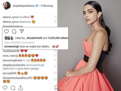 दीपिका पादुकोण की एक फोटो पर पति रणवीर सिंह ने गाने की लाइन लिखकर कमेंट किया है।
