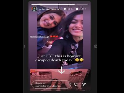 अपनी इंस्टाग्राम स्टोरीज पर रश्मिका ने श्रद्धा के साथ एक सेल्फी शेयर की और लिखा, "सिर्फ आपकी जानकारी के लिए, इस तरह हम आज मौत से बच गए...।"