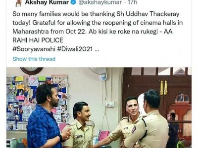 अक्षय के स्पष्टीकरण के बाद, डीजीपी ने कहा कि उनकी टिप्पणी एक 'हल्के अंदाज' में थी।" आपकी प्रतिक्रिया और सम्मान के लिए धन्यवाद जो आपने पुलिस बलों के लिए दिखाया। मेरी टिप्पणी भी हल्के-फुल्के अंदाज में थी। 'सूर्यवंशी' की बात करें तो फिल्म में कैटरीना कैफ भी मुख्य भूमिका में हैं। यह मूल रूप से 24 मार्च, 2020 को रिलीज होने वाली थी, लेकिन कोरोनावायरस महामारी के कारण इसमें देरी हुई। फिल्म दीपावली में रिलीज होगी।
