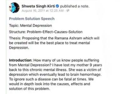 इन पोस्ट्स में श्वेता सिंह कीर्ति ने लिखा है, ‘इस बीमारी के चलते अपनी मां को खो देने के बाद, मैं कभी नहीं चाहूंगी कि कोई भी व्यक्ति इस बीमारी से गुजरे। इसीलिए मैं एक सुझाव के साथ आई हूं। मैं सैंन फ्रांसिस्को में एक रामना आश्रम खोलना चाहती हूं। जो हर किसी के लिए खुला रहेगा। लेकिन ये खासतौर पर उन लोगों के लिए होगा जो डिप्रेशन का शिकार हैं।