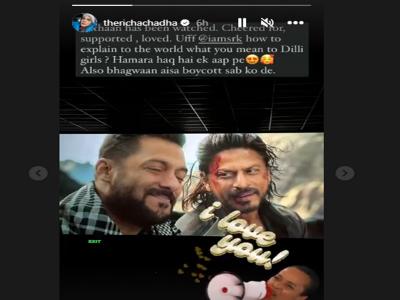 ऋचा ने अपनी इंस्टा स्टोरी में पठान फिल्म के एक सीन का स्क्रीन शॉट शेयर किया है। इस तस्वीर को साझा करते हुए उन्होंने शाहरुख और फिल्म की अपने ही लहजे में तारीफ की। अभिनेत्री ने लिखा- 'पठान' देख ली। फिल्म को मेरा समर्थन और प्यार। ऋचा ने आगे लिखा कि ''दुनिया को कैसे बताएं कि दिल्ली की लड़कियों के लिए शाहरुख खान के क्या मायने हैं? हमारा हक है आप पर। भगवान ऐसा बॉयकॉट सबको दे।"