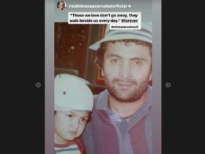 रिद्धिमा कपूर साहनी ने हाल ही में अपने इंस्टाग्राम स्टोरीज पर अपने पिता ऋषि कपूर के साथ बचपन की एक प्यारी तस्वीर साझा की। मनमोहक फोटो के साथ उन्होंने लिखा, "जिन्हें हम प्यार करते हैं वे दूर नहीं जाते, वे हर दिन हमारे साथ चलते हैं। #हमेशा के लिए #मिस्सीयूसोमच।"