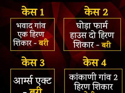 इनमें से एक मामले में सलमान खान को साल 2006 में स्थानीय अदालत ने दोषी करार दिया था। सलमान खान एक हफ्ते तक जेल में रहे थे। बाद में राजस्थान हाई कोर्ट ने उन्हें बरी कर दिया था। सलमान खान के खिलाफ इन चार में से एक एक मामला आर्म्स एक्ट के तहत भी दर्ज था। उन पर आरोप था कि जब उन्होंने शिकार के लिए बंदूक का इस्तेमाल किया तो उनका लाइंसेस एक्सपायर हो चुका था। बाद में सबूतों के अभाव में आर्म्स एक्ट का मामला वापस ले लिया गया।