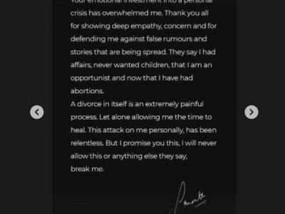 तलाक अपने आप में एक बहुत दर्दनाक स्थिति है मुझे अकेले उबरने का समय दीजिए। मुझ पर पर्सनली अटैक करना बेहद कठोर है। लेकिन मैं आपसे वादा करती हूं कि मैं किसी चीज या किसी को अपने आप को तोड़ने का मौका नहीं दूंगी