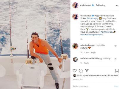 उन्होंने सोशल मीडिया पर संजय दत्त की एक थ्रोबैक तस्वीर शेयर करते हुए कैप्शन में लिखा, 'हैपी बर्थडे पापा, भगवान आपको लंबी उम्र और अच्छी सेहत दे। मैं आपसे बहुत प्यार करती हूं। मैं हमेशा आपसे इसी तरह प्यार करती रहूंगी। चीअर्स पॉप्स। आपका दिन शानदार रहे।' फैंस इस पोस्ट को काफी पसंद कर रहे हैं। मालूम हो, त्रिशाला को अक्सर ही संजय के साथ खूबसूरत तस्वीरें पोस्ट करते हुए देखा जाता। त्रिशाला अपने पापा के साथ खास बांड शेयर करती रहती हैं।
