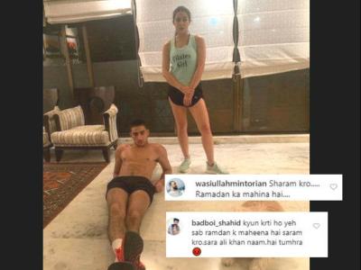 इस फोटो में सारा अपने भाई इब्राहिम के साथ नजर आई हैं। लोगों का कहना है कि रमजान के महीने में ऐसी छोटी ड्रेस में फोटो पोस्ट करना रमजान का अपमान है। लोगों ने सारा पर जमकर निशाना साधा है।