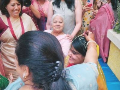 बॉलीवुड एक्टर शाहिद कपूर की बहन सना कपूर की चूड़ा और कलीरा सेरेमनी से कुछ तस्वीरें सोशल मीडिया पर काफी तेजी से वायरल हो रही हैं। इन तस्वीरों में मीरा राजपूत अपने पति शाहिद कपूर और पूरे परिवार के साथ फैमिली फंक्शन को एन्जॉय करती हुई नजर आ रही हैं।