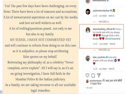 उधर, अभिनेता आर माधवन (R Madhvan) ने भी शिल्पा का समर्थन करने हुए लिखा है कि आप सबसे मजबूत लोगों में से एक हैं, जिन्हें मैं जानता हूं और मुझे पूरा विश्वास है कि आप इस चुनौती को भी शान और गरिमा से पार कर लेंगी। माधवन ने आगे लिखा कि हमारी दुआएं हमेशा आपके और आपके परिवार के साथ हैं।