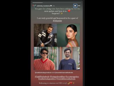 गुरुवार को सामने आई खबरों से पुष्टि की गई है कि सलमान खान की अपकमिंग फिल्म में रश्मिका उनकी हीरोइन होंगी। ए.आर. मुरुगादोस द्वारा निर्देशित साजिद नाडियाडवाला की सिकंदर मोस्ट अवेटेड फिल्म है जो 2025 में रिलीज होगी। अभिनेत्री ने सोशल मीडिया पर खुद इस फिल्म में शामिल होने की सूचना दी और खुशी जताई।