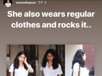 सोनम कपूर ने अपने इंस्टाग्राम पर जाह्नवी कपूर की एक फोटो शेयर की है। इस फोटो में जाह्मवी ने व्हाइट क्रॉप टॉप और डेनिम शॉर्ट्स पहन रखे हैं। सोनम कपूर ने इस फोटो को शेयर करके लिखा है, वो रेग्युलरली भी शॉर्ट्स पहनती है और बेहद खूबसूरत लगती है। सोनम कपूर ने इस रिप्लाई से कैटरीना को जवाब दिया है।