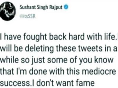 अब सोशल मीडिया पर सुशांत की कुछ पुराने ट्वीट वायरल हो रहे हैं। कहा जा रहा है कि आत्महत्या करने से कुछ देर पहले सुशांत ने अपने ट्विटर हैंडल पर 3 ट्वीट्स शेयर किए थे जिसे उन्होंने शेयर करने के फौरन बाद डीलीट भी कर दिया था। हालांकि, यह बात अभी तक साफ नहीं हो पाई है कि यह सुशांत सिंह ने किया था या सोशल मीडिया पर किसी ने इसे जानबूझकर वायरल किया है।
