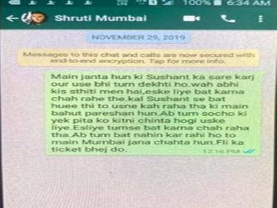 इसी दिन सुशांत के पिता ने उनकी मैनेजर श्रुति मोदी को भी एक मैसेज किया था। इसमें उन्होंने लिखा था- मैं जानता हूं कि सुशांत के सारे कर्ज और उसे भी तुम ही देखती हो। वह अभी किस स्थिति में हैं, इसके लिए बात करना चाह रहा हूं। सुशांत से बात हुई थी तो उसने कह रहा था कि मैं बहुत परेशान हूं। अब तुम सोचो कि एक पिता को कितनी चिंता होगी उसके लिए। इसलिए तुमसे बात करना चाह रहा था। अब तुम बात नहीं कर रही हो तो मैं मुंबई आना चाहता हूं। फ्लाइट का टिकट भेज दो।