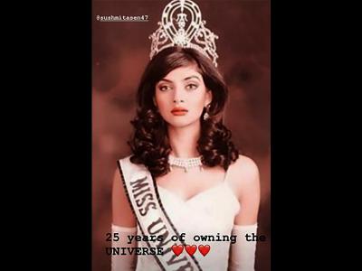 साथ ही रोहमन ने फोटो को शेयर करते हुए लिखा कि, "मिस यूनिवर्स जीते हुए 25 साल हो गए। रोहमन ने कैप्शन में हार्ट वाले इमोटिकॉन का प्रयोग भी किया। सुष्मिता ने रोहमन की स्टोरी शेयर की और लिखा कि, "मैं तुमसे प्यार करती हूं।