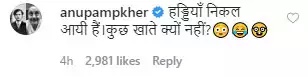 हाल ही में टाइगर श्रॉफ ने अपनी एक पुरानी तस्वीर सोशल मीडिया पर शेयर किया है। यह तस्वीर फिल्म 'हीरोपंती' के दिनों की है। टाइगर ने इस तस्वीर के साथ लिखा, 'जब दाढ़ी नहीं आती थी। #बचपना'। टाइगर श्रॉफ की इस तस्वीर पर वेटरन एक्टर अनुपम खेर का जबरदस्त रिएक्शन आया है। अनुपम खेर ने मजेदार कॉमेंट करते हुए लिखा, 'हड्डियाँ निकल आयी हैं। कुछ खाते क्यों नहीं?'