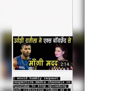 उर्वशी ने जो स्क्रीनशॉर्ट शेयर किया है उसमें उन्होंने एक्स बॉयफ्रेंड से मदद मांगी है। इस वीडियो में हार्दिक और उर्वशी की फोटो लगी हुई है। उर्वशी ने सोशल मीडिया पर लिखा है कि मैं प्रार्थना करती हूं कि इस वीडियो के लिए जिम्मेदार मीडिया चैनल प्लीज यूट्यूब पर ऐसे वीडियो अपलोड करना बंद करें।