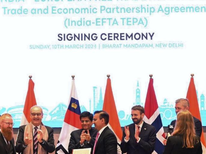 नई दिल्लीः वाणिज्य एवं उद्योग मंत्री पीयूष गोयल ने शनिवार को कहा कि भारत और चार देशों के यूरोपीय समूह ईएफटीए के बीच मुक्त व्यापार समझौता एक अक्टूबर से लागू होगा। दोनों पक्षों ने 10 मार्च, 2024 को व्यापार और आर्थिक भागीदारी समझौते (टीईपीए) पर हस्ताक्षर किए। इस समझौते के तहत, भारत को इस समूह से 15 वर्षों में 100 अरब डॉलर के निवेश की प्रतिबद्धता प्राप्त हुई है, जबकि स्विस घड़ियों, चॉकलेट और तराशे व पॉलिश किए हुए हीरों जैसे कई उत्पादों पर कम या शून्य शुल्क की अनुमति दी गई है। गोयल ने सोशल मीडिया मंच ‘एक्स’ पर पोस्ट में कहा, “भारत-ईएफटीए समझौता एक अक्टूबर से लागू होगा।” यूरोपीय मुक्त व्यापार संघ (ईएफटीए) के सदस्य आइसलैंड, लिकटेंस्टीन, नॉर्वे और स्विट्जरलैंड हैं। इस संगठन ने 100 अरब डॉलर के निवेश की प्रतिबद्धता जताई है।