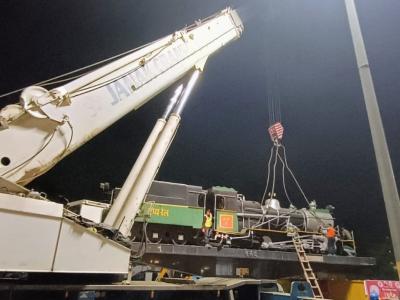 Nagpur Junction railway station News: नागपुर स्टेशन के पश्चिमीद्वार परिसर के कार पार्किंग एरिया से साेमवार की रात 38 मेट्रिक टन वजन के हेरिटेज बुलंद इंजन काे हटाया गया.
