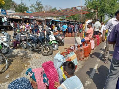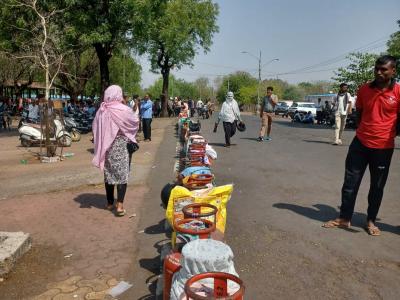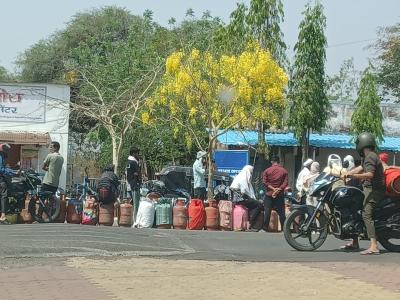 नागपुर में तापमान 41 डिग्री सेल्सियस, सिलेंडर की किल्लत नहीं, फिर कतार क्यों?, वाड़ी के अग्रवाल गैस एजेंसी में लगी 2 किमी की लाइन, देखिए तस्वीरें