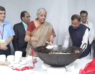 कारोबार : WATCH: निर्मला सीतारमण ने बजट पूर्व 'हलवा' समारोह में हिस्सा लिया, मंत्रालय के अधिकारियों को बांटा